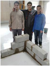 C’est dans ce dernier que des jeunes de 4e 1 et 4e 2 ont pu réaliser un angle de mur en appliquant les techniques de la maçonnerie.